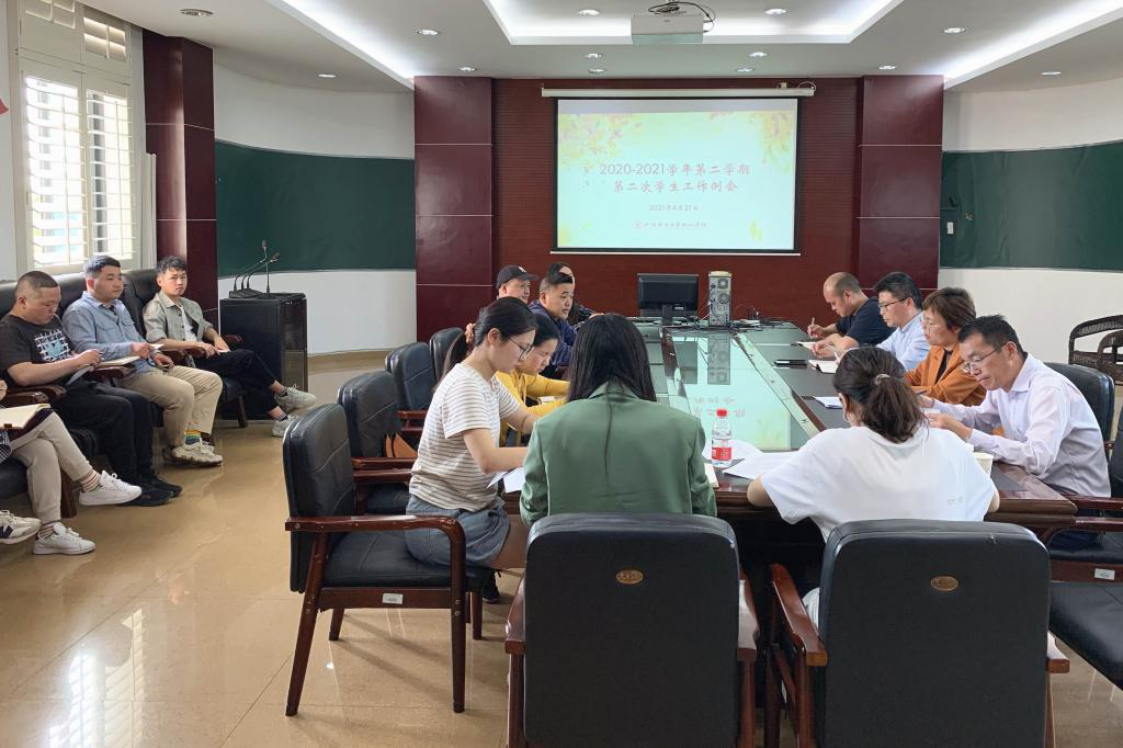 4月21日下午,学院在29幢226会议室召开2020-2021学年第二学期第二次学生工作例会,本次会议以毕业生就业工作为主题,对我校毕业生就业工作进行再部署、再推进。党委副书记孔德民出席,各系党总支副书记、学工办主任、辅导员及学生处全体人员参会,会议由学生处负责人主持。