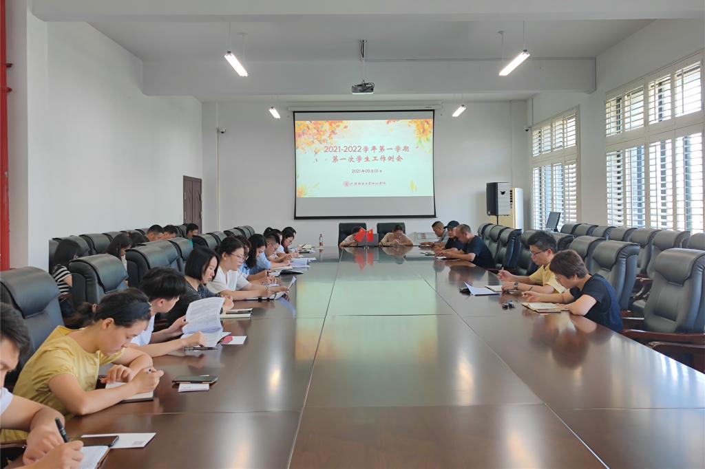 为更好的落实学生返校和新学期相关工作,9月1日上午学院在28幢308会议室召开2021-2022学年第一学期第一次学生工作例会。党委副书记孔德民出席,各系党总支副书记、学工办主任、辅导员及学生处全体人员参会,会议由学生处负责人主持。