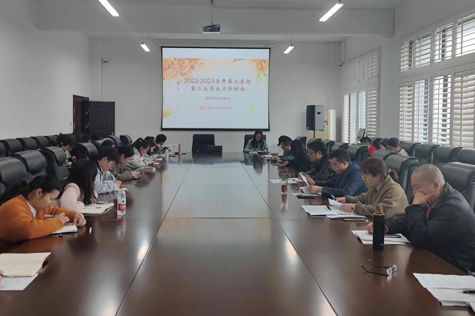 为加强特殊群体学生思想动态研判,全面排查校园安全隐患,3月23日下午,学院召开本学期第二次学生工作例会,学院党委委员、副院长曾惠成出席并讲话,各系总支负责人、学工办主任、辅导员,保卫处、学生处、招生就业处、团委等相关职能部门参加会议。会议由学生处负责人主持。