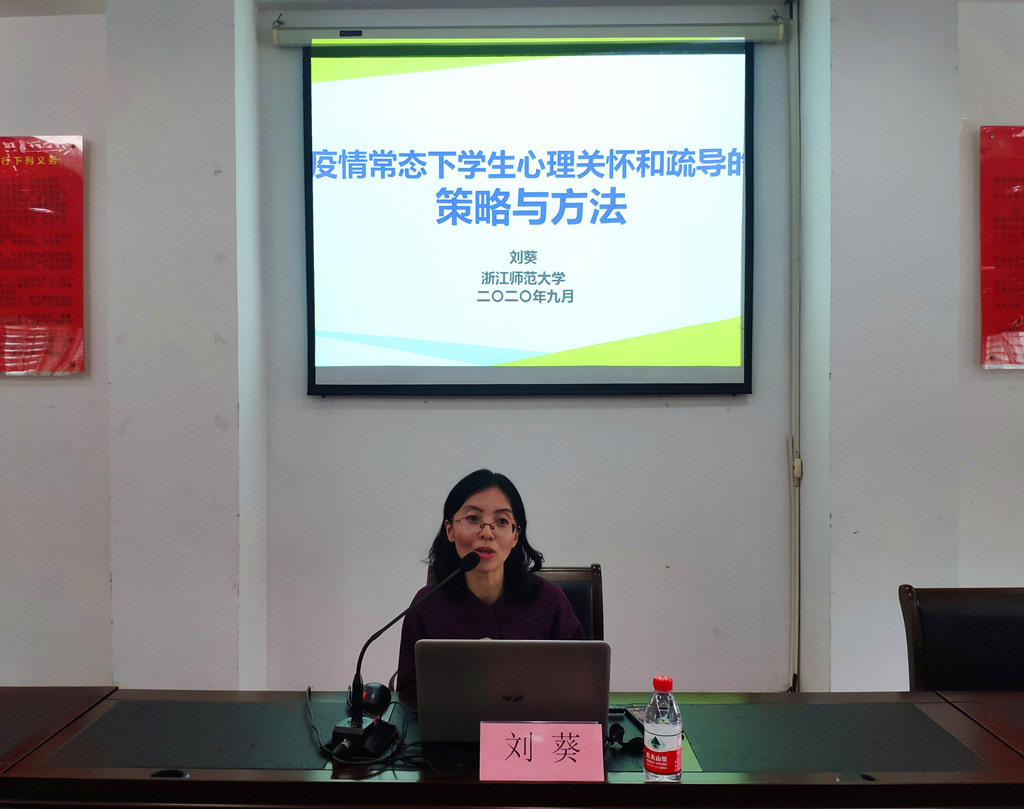 刘葵以《疫情常态下学生心理关怀和疏导的策略和方法》为题,分享了心理助人的作用,讲述了如何用好特殊时间节点做好特殊学生群体的排查工作,针对全面复学后学生面临的典型问题,作为班主任如何给学生提供一定的心理支持。讲座过程中,刘老师结合自身工作分享了大量的工作案例和个人心得。