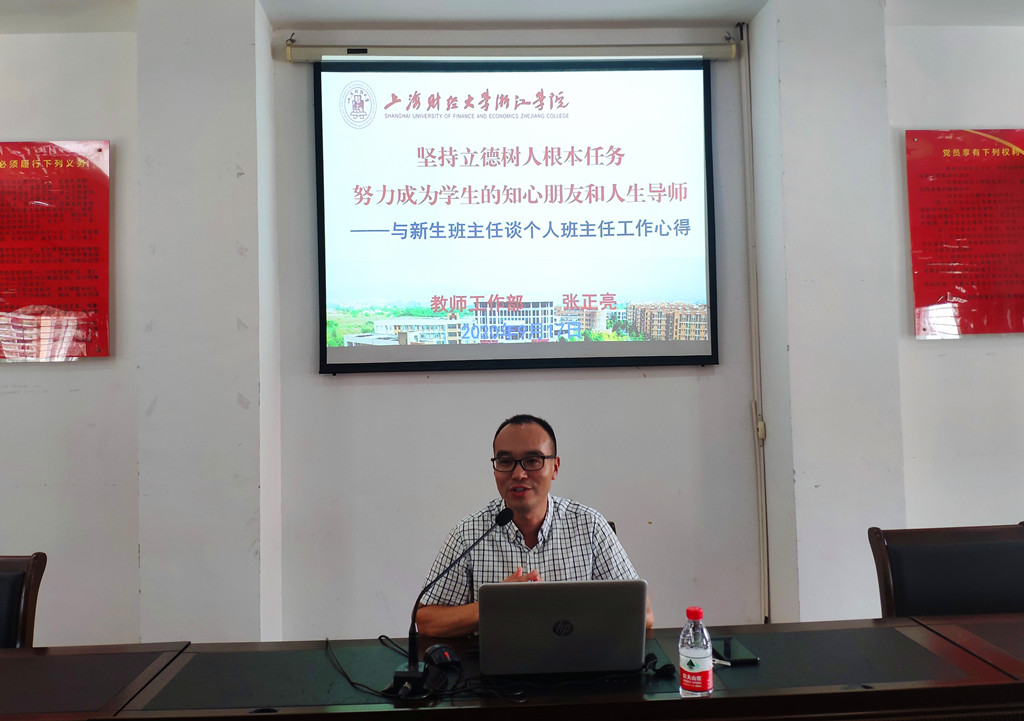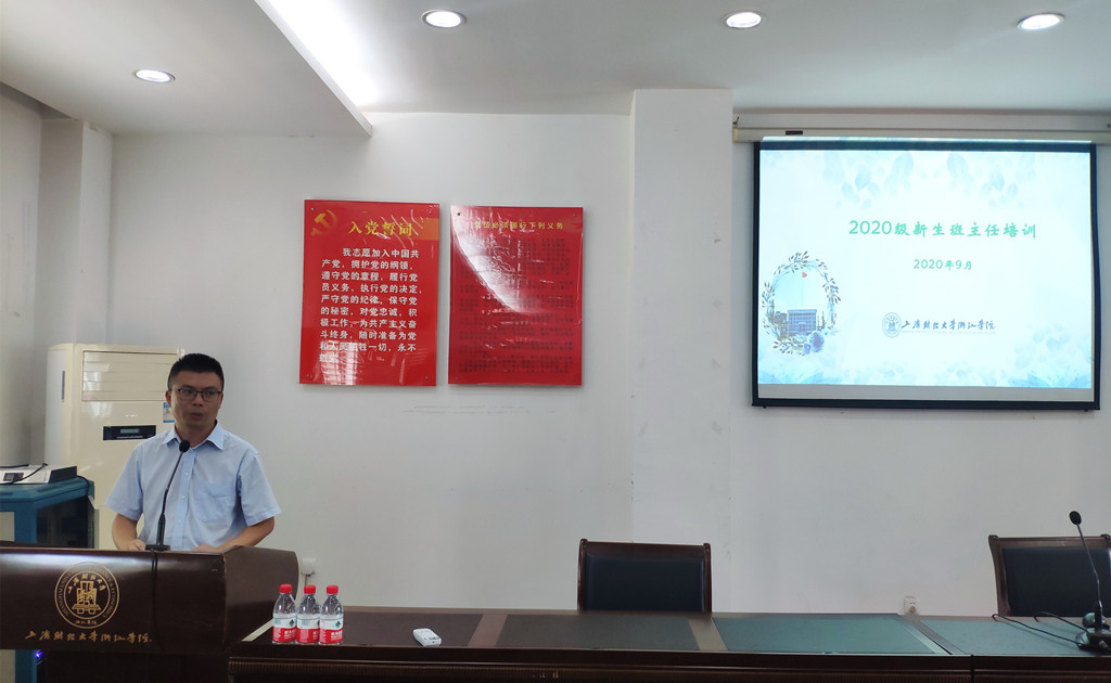 为进一步加强班主任队伍建设,确保新生入学各项工作顺利开展,9月17日下午,学院在28幢118会议室举办了2020级新生班主任培训。本次培训邀请了浙江师范大学心理健康教育与发展中心副主任刘葵、学院党委委员张正亮及学生处的两位老师,为与会老师带来了一场精彩的专业知识与经验分享。学院党委副书记孔德民出席,各系新生班主任和全体辅导员70余人参加了培训。