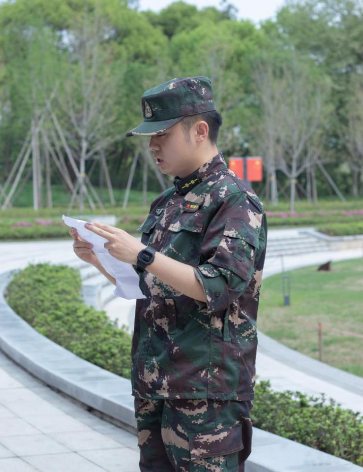 院人武部朱俊老师带领大家走近纪念碑瞻仰,绕纪念碑逆时针方向缓走一圈,依次献上花束。朱老师说:“没有中国共产党,没有革命先烈,就没有现在繁荣富强的新中国。作为新时代的大学生,要铭记历史,感恩先人,要担负起新时代赋予的历史责任,为实现中华民族伟大复兴贡献自己的全部力量。”