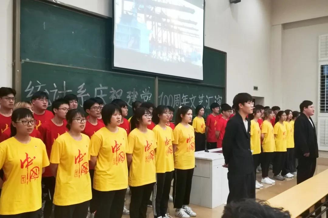 19应用统计学(金融统计)二班、20经济统计学班先后演唱了《我和我的祖国》通过歌声唱出了对祖国美好山河和人民勤劳开拓的礼赞,也唱出了将个人理想与国家命运紧紧相连的想法。