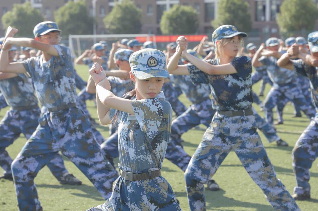 分列式结束后,军体拳方阵向操场中心集合,同学们动作姿势标准到位、一招一式强劲有力,呐喊口号气势磅礴,精彩的表演赢得了在场师生的阵阵掌声。