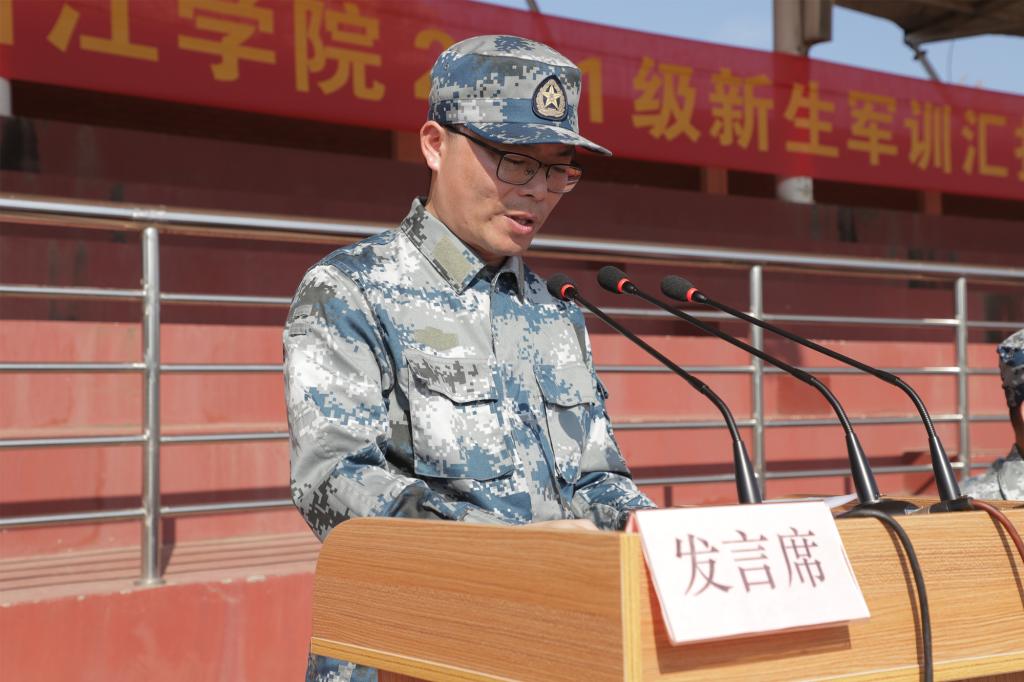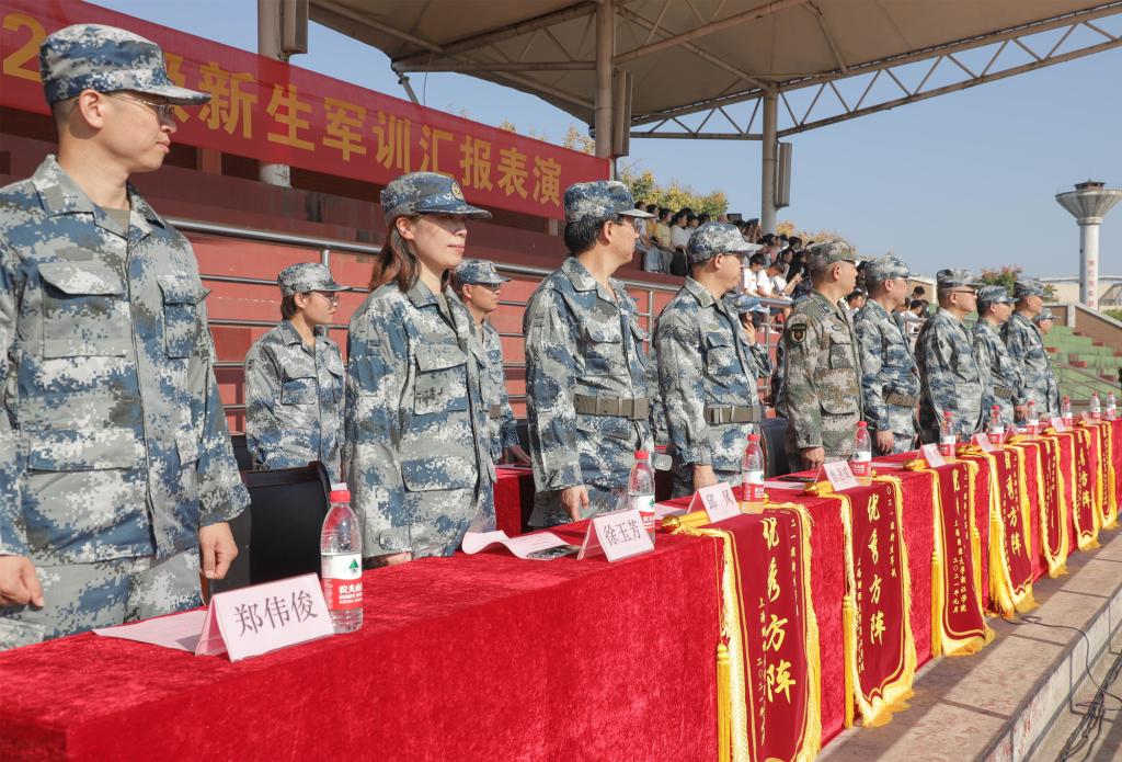 9月24日上午,学院2021级新生军训汇报表演在学院田径场举行。院领导王建新、马洪、孔德民、曾惠成、陈钢、邱风、张正亮、徐玉芳、郑伟俊,金东区人武部军事科科长徐奇出席大会。人武部负责人主持会议。