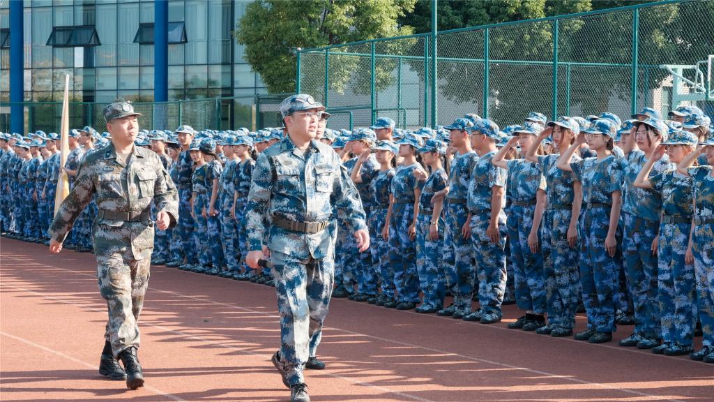 学院党委书记王建新在党委副书记孔德民、金东区人武部徐奇的陪同下,检阅了各军训方阵。1500余名新生精神饱满、斗志昂扬,充分展现了军人般的飒爽英姿。