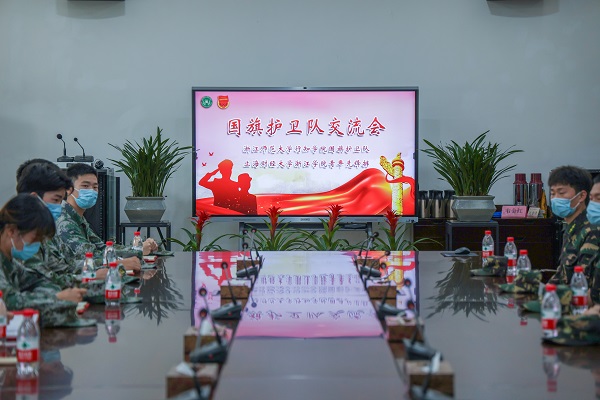 上午,全体人员在28-108和28-308举行国旗护卫队工作交流会,双方通过PPT展示了各自组织的成立历程、管理架构、规章制度、队伍建设和日常训练等方面,参会人员针对介绍内容进行提问交流,队员们分享作为国旗护卫队成员的感受和收获。下午,双方国旗护卫队成员在北门国旗台前进行队列和升旗仪式展示。两支队伍精神抖擞、训练有素,分列式表演步伐整齐、口号嘹亮,升旗仪式礼仪规范、动作标准,赢得了现场师生的阵阵掌声。