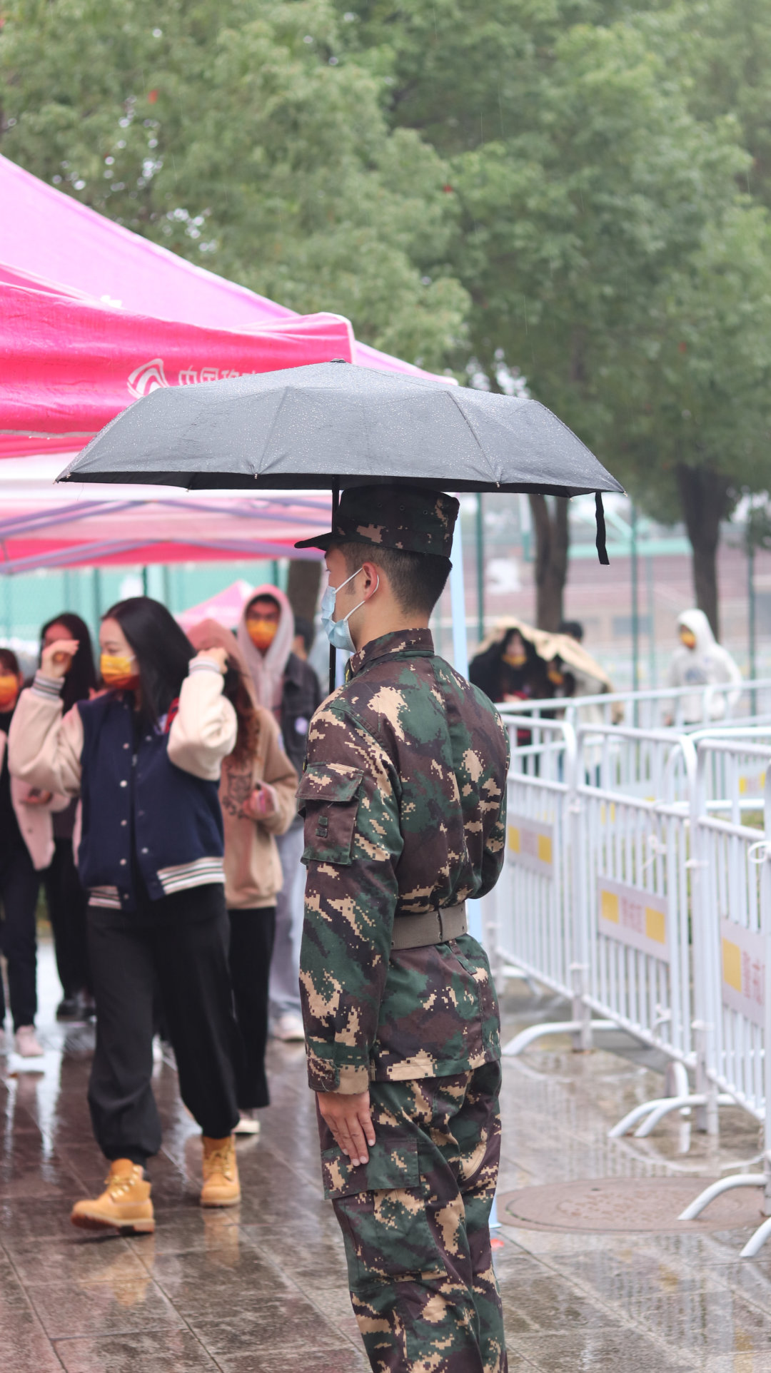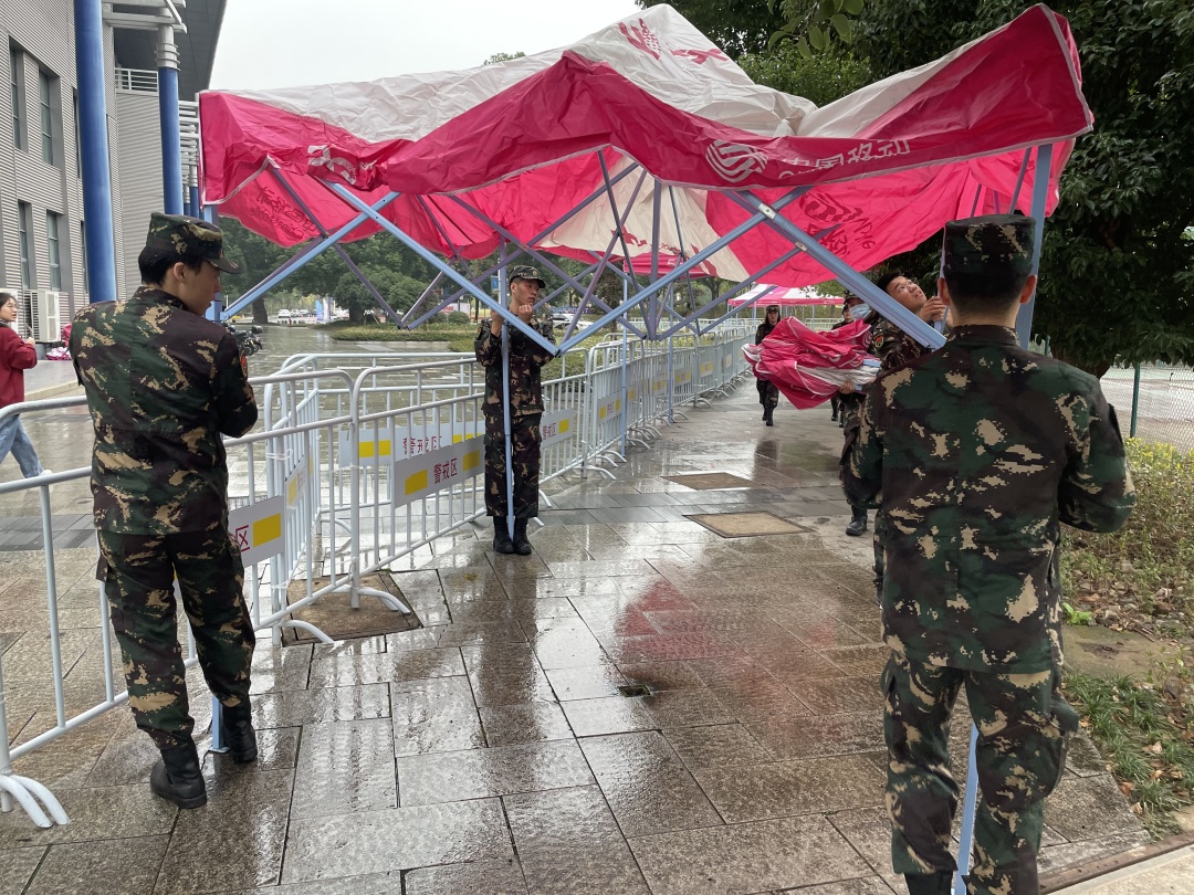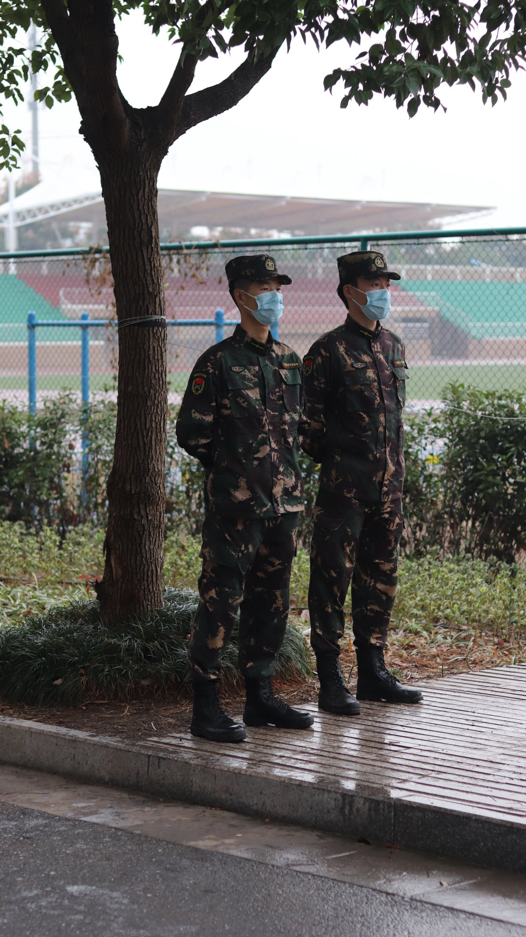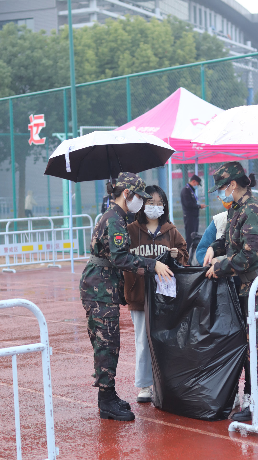 一场冬雨让活力满满的同学们在工作中增添了几分忙碌。财浙青年先锋排的成员在湿冷的天气条件下,依然精神饱满,动作规范,统一着装,笔直地站在操场入口、出口,守护省运会观众们的前行道路,忘我地投入在工作中,以良好的精神面貌圆满完成了当天的安检工作,与安保人员一起携手打造安全之路。