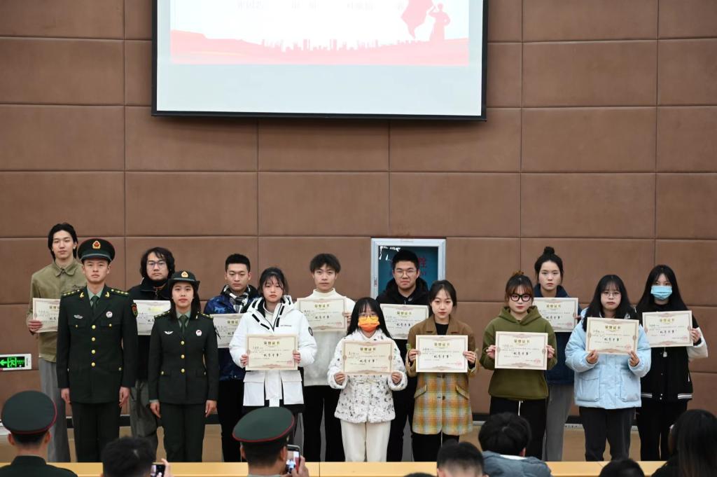 2022年,学院共有23名同学光荣退伍。他们把爱国之心化为报国之行,把个人理想融入社会理想,在部队中表现优异,部分学生受到部队表彰和奖励,将财浙精神在军营中发扬。朱俊老师为他们颁发了绶带和纪念品,希望他们能够将部队的优良传统和军人的优秀品质带回学校,在学习生活中,要肯吃苦、不怕难、敢担当,提高自身的综合素质,同时也要带动周围的同学一起进步。同时,也希望和欢迎退役学生都能够加入到先锋排大家庭中。