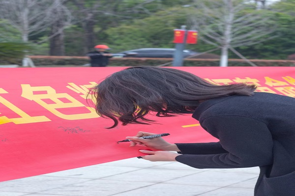 在清明祭英烈横幅签名活动环节,先锋排成员们在横幅上签下自己的名字,那写在横幅上的笔笔痕迹不但代表对先烈的缅怀,同时也表达了大家浓烈的爱国情怀。