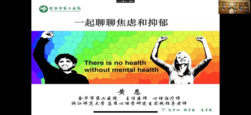为进一步提升学院心理健康教育工作水平,发挥朋辈积极作用,为同学们的心理健康保驾护航,12月1日和7日晚,学生处心理健康教育与咨询中心邀请金华市第二医院主任医师王卫平和黄恩开展寝室长专题培训,主题分别为《大学生心理健康》和《一起聊聊焦虑和抑郁》。全体寝室长参加。