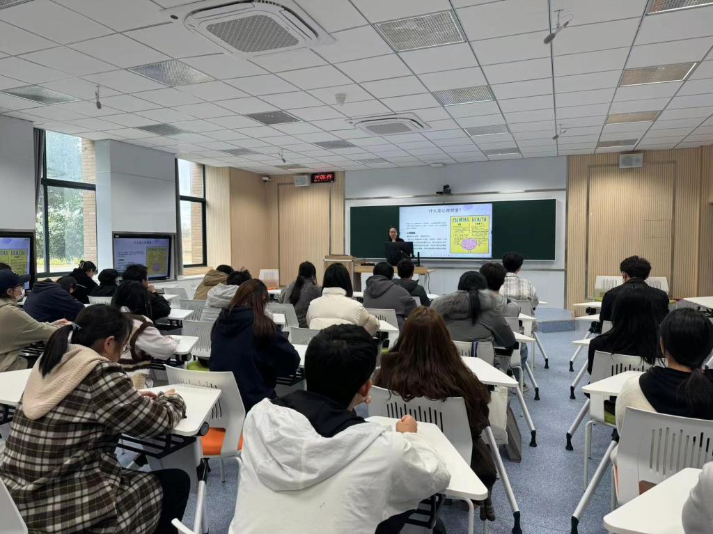 为了加强心理健康学生工作队伍建设,提高朋辈心理技能,12月9日,学生处心理健康教育与咨询中心邀请浙江省立同德医院、浙江省精神卫生中心临床心理科心理治疗师杨雨晴医生在智慧教室6-104开展《大学生常见的心理健康问题——识别和应对》培训,23级全体心理委员线下参加,23级全体寝室长线上观看。